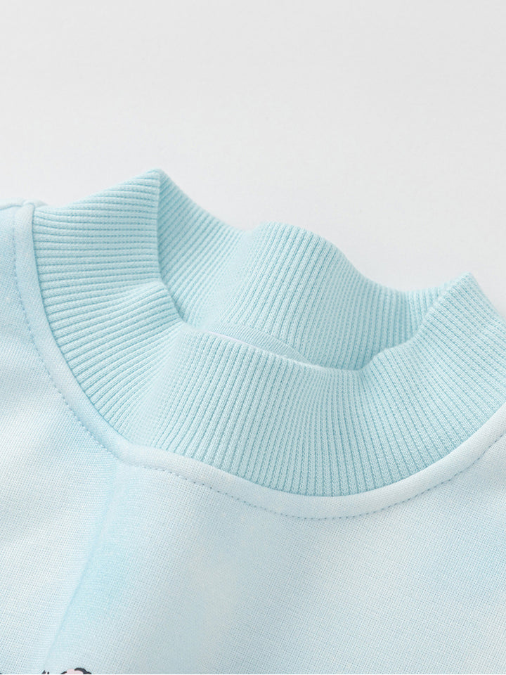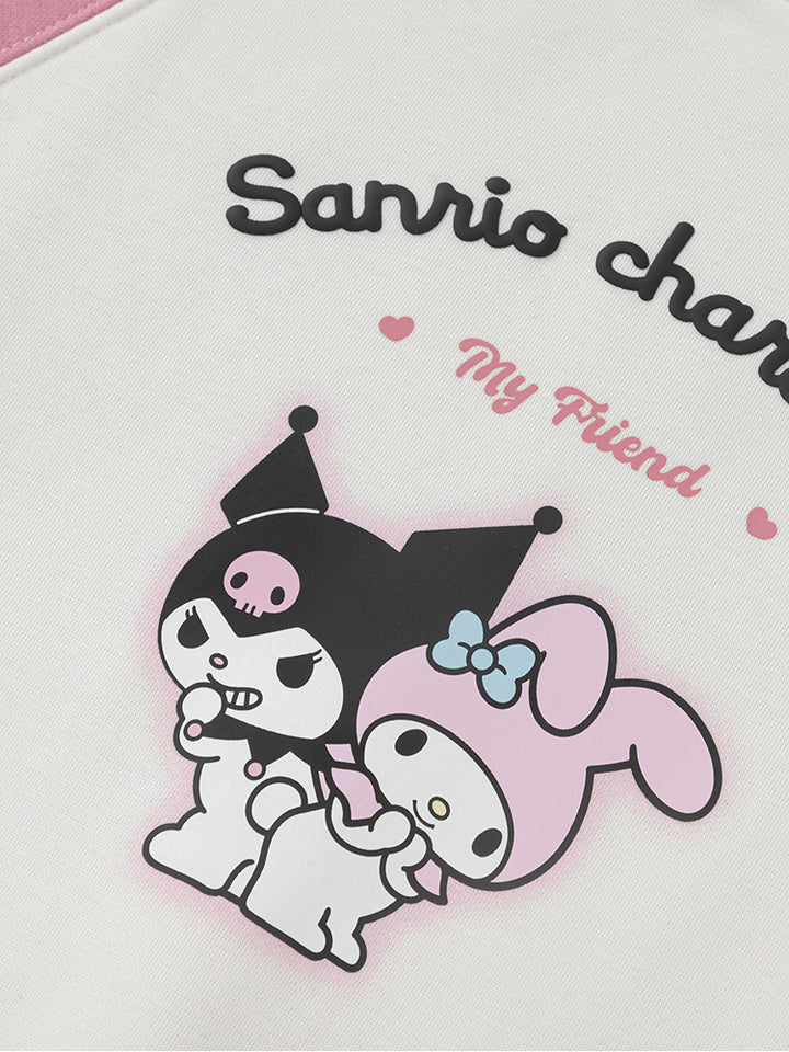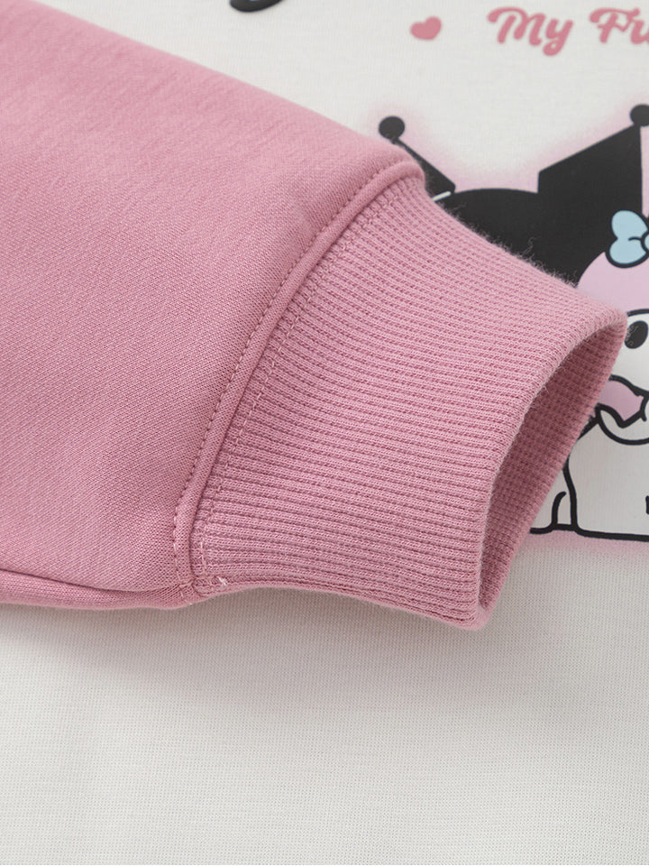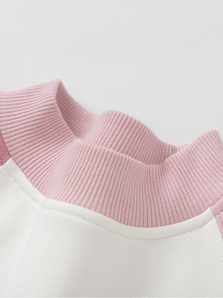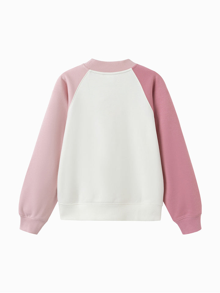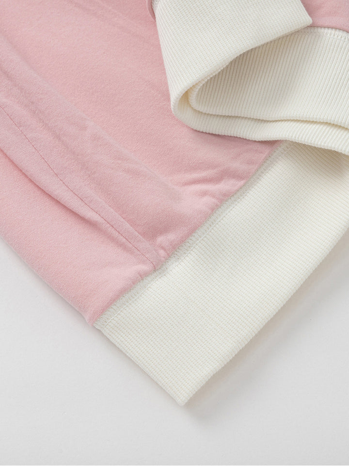 بلوزة سويت شيرت كاجوال بأكمام طويلة بنمط متباين اللون مزينة بطبعة من الجهة الأمامية وتأتي بياقة مدورة الشكل