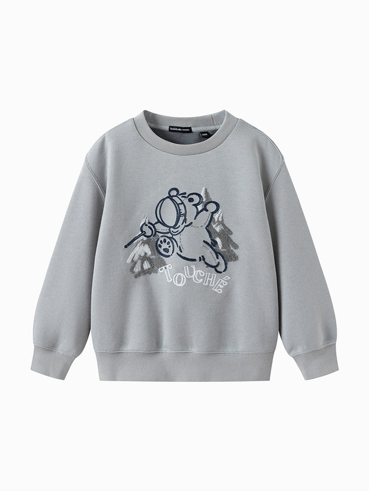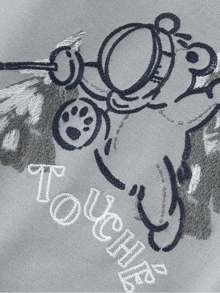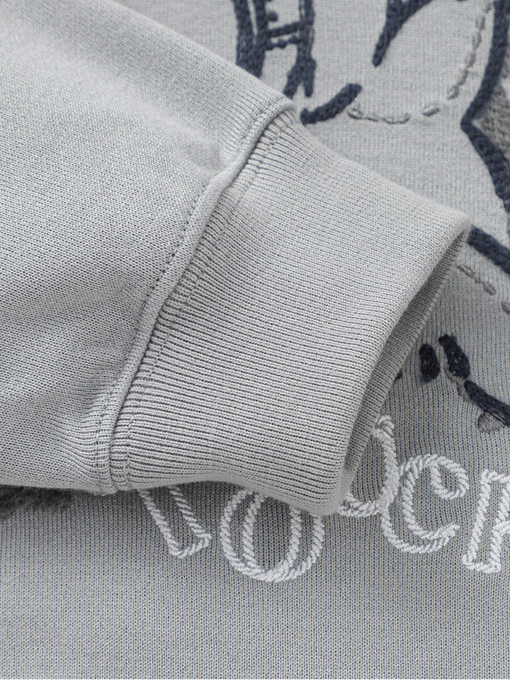 بلوزة سويت شيرت كاجوال بأكمام طويلة، مزينة طبعة تطريز من الجهة الأمامية وتأتي بياقة مدورة الشكل