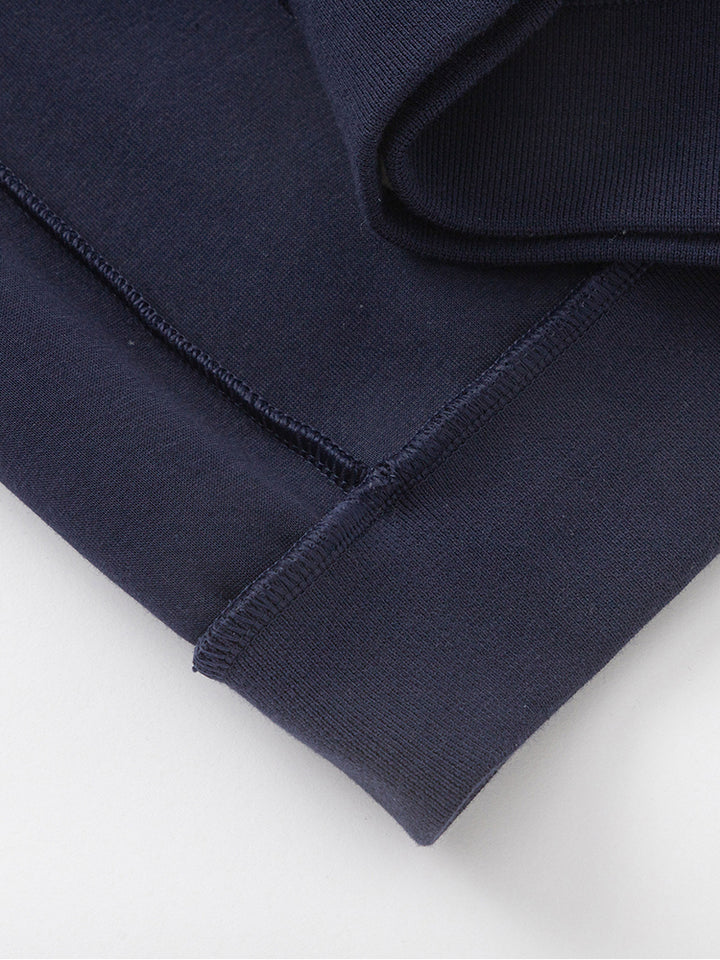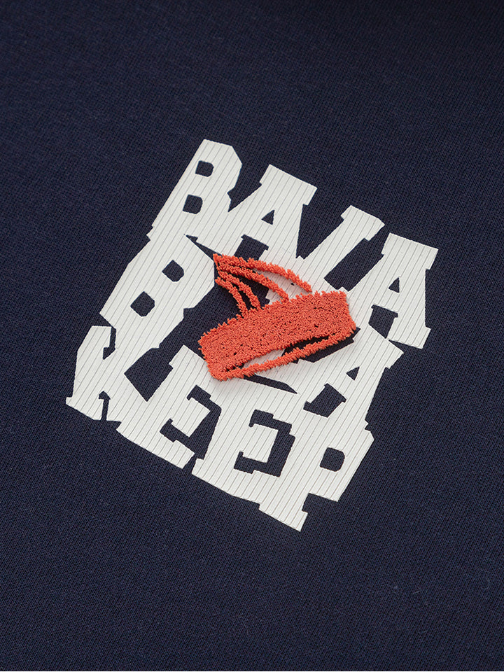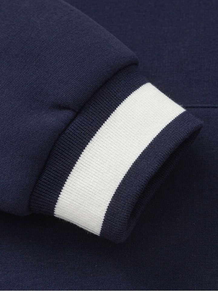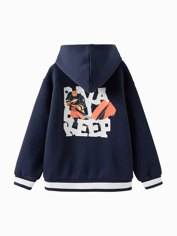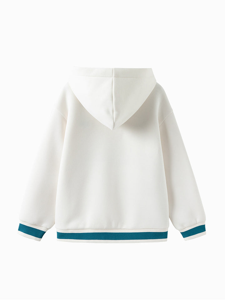 بلوزة هودي كاجوال بأكمام طويلة، مزينة بطبعة متباينة اللون وتطريز صغيرة من الجهة الأمامية، تأتي بجيب أمامي وياقة هودي متصلة