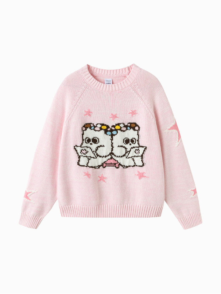 سويتر محبوك مزين برسمة كرتونية أمامية للبنات