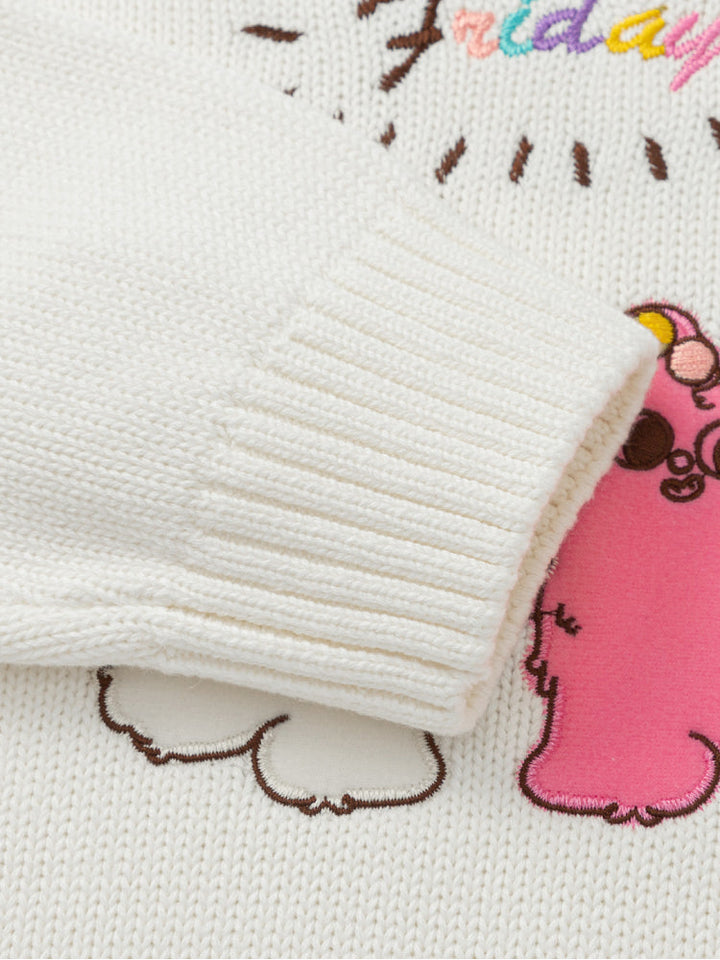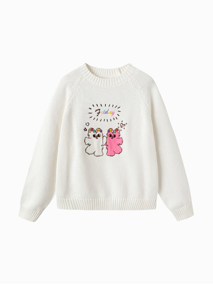 سويتر محبوك مزين برسمة كرتونية أمامية للبنات