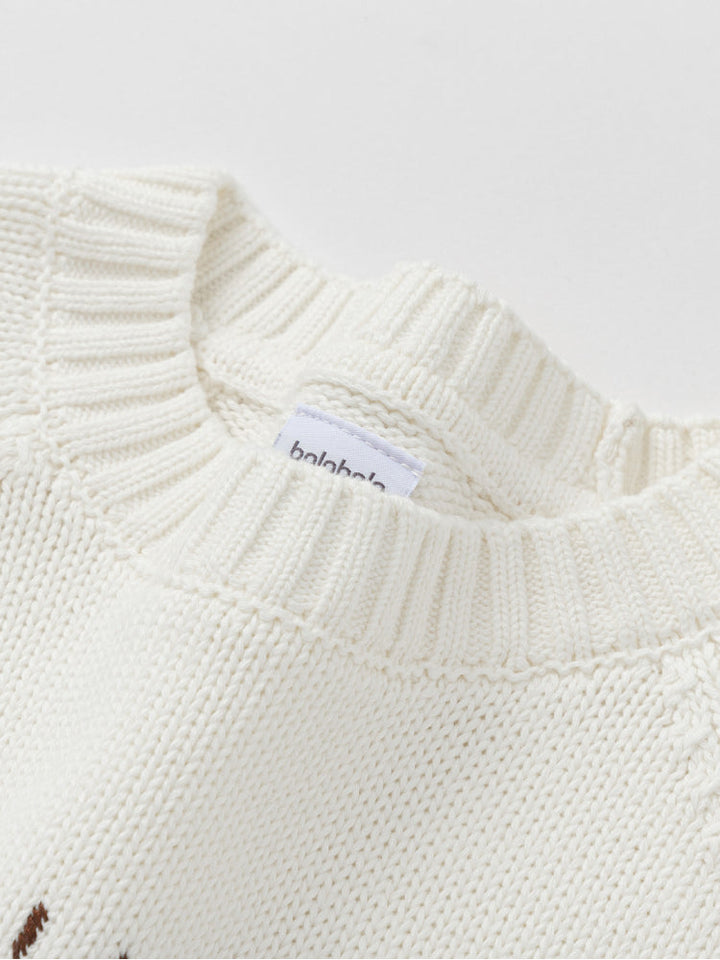 سويتر محبوك للأطفال بأكمام طويلة وياقة دائرية، مزين برسمة كرتونية مرحة في الأمام. يمنح الدفء والراحة مع إضافة لمسة مبهجة إلى الإطلالات اليومية.
