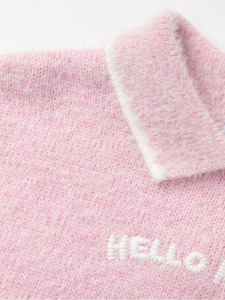 سويتر ناعم للأطفال بملمس دافئ وياقة بولو كلاسيكية، مزين بتصميم كرتوني مرح. مثالي ليمنح الصغار الدفء والأناقة في الأجواء الباردة.