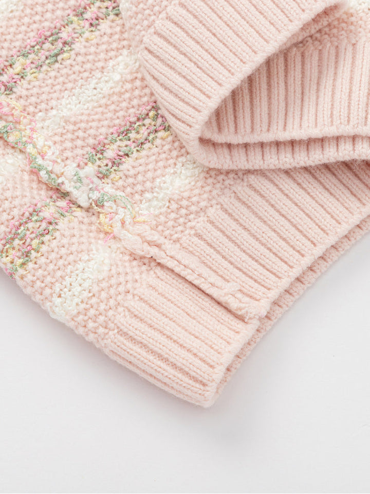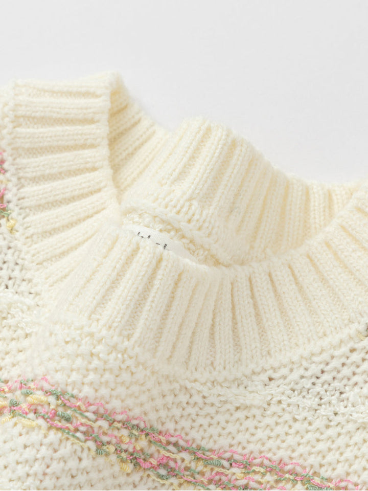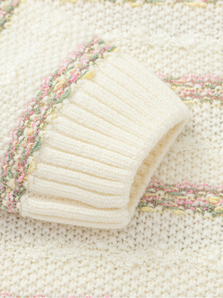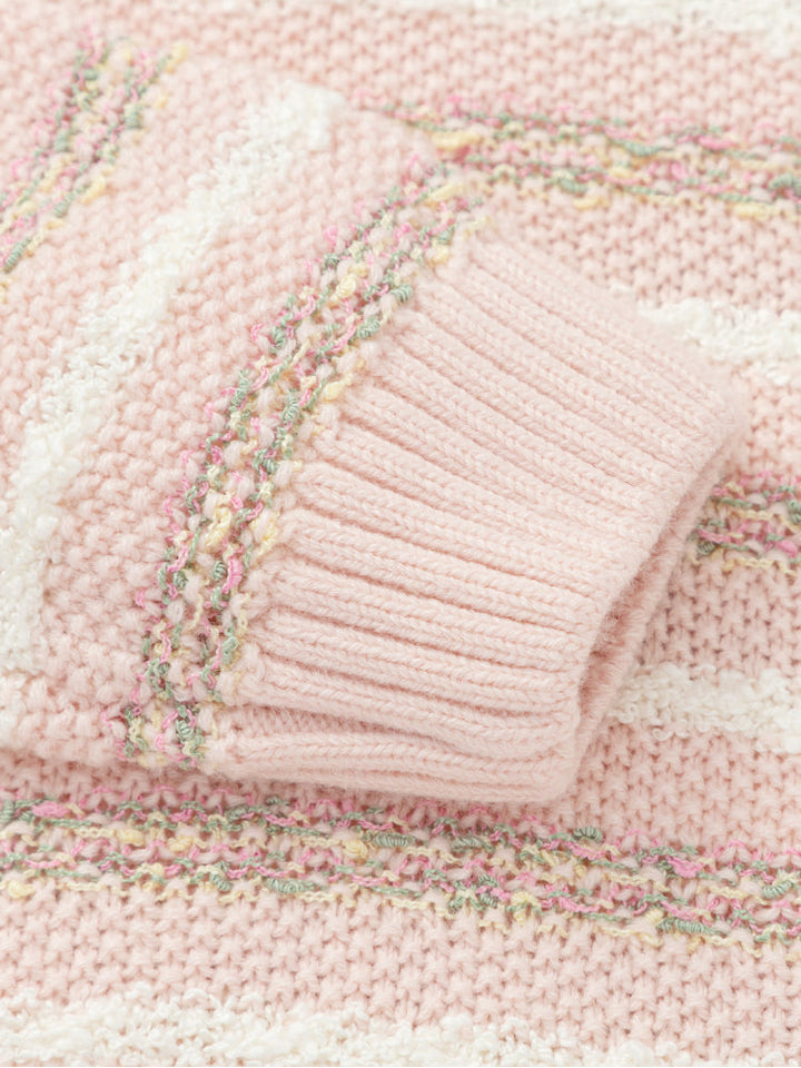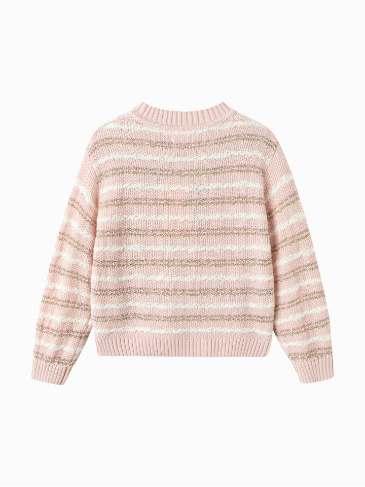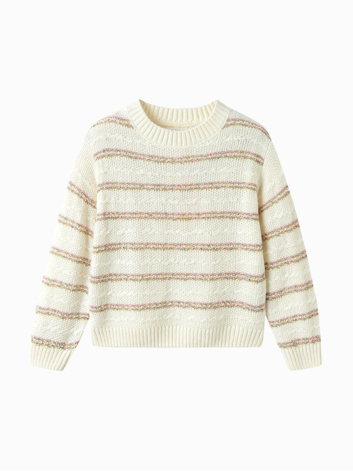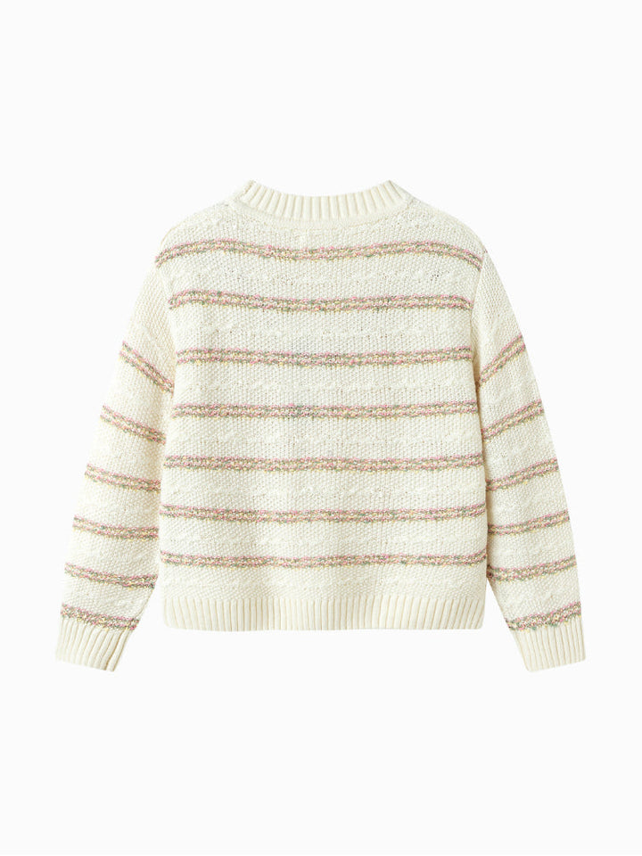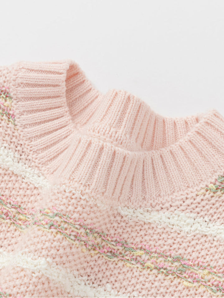 سويتر محبوك للأطفال بنمط مخطط، مع ياقة دائرية وأكمام طويلة. مصمم ليمنح الراحة والدفء، مناسب للارتداء اليومي.