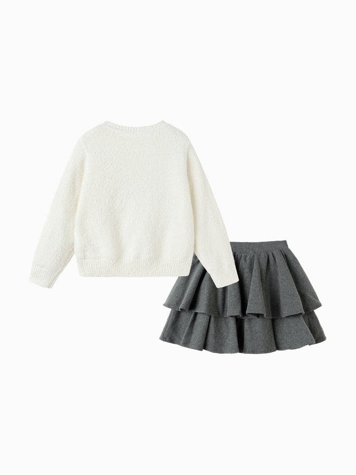 طقم قطعتين بسويتر محبوك وتنورة بطبقات للبنات