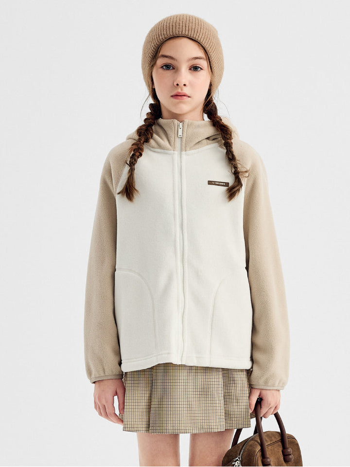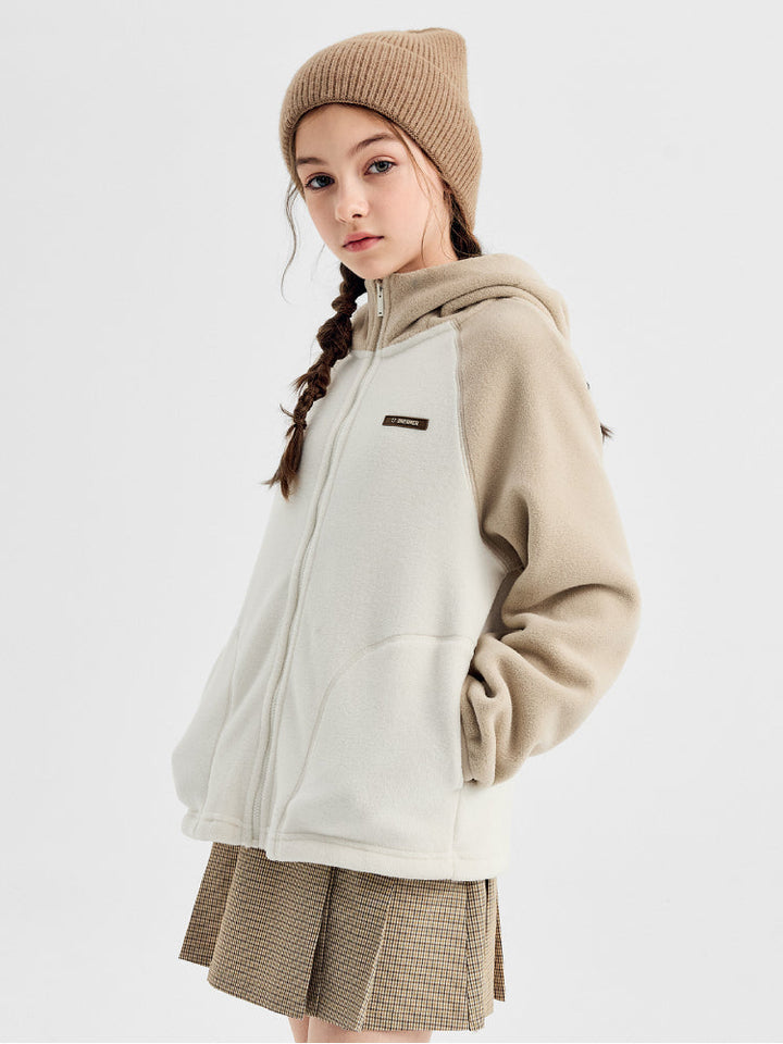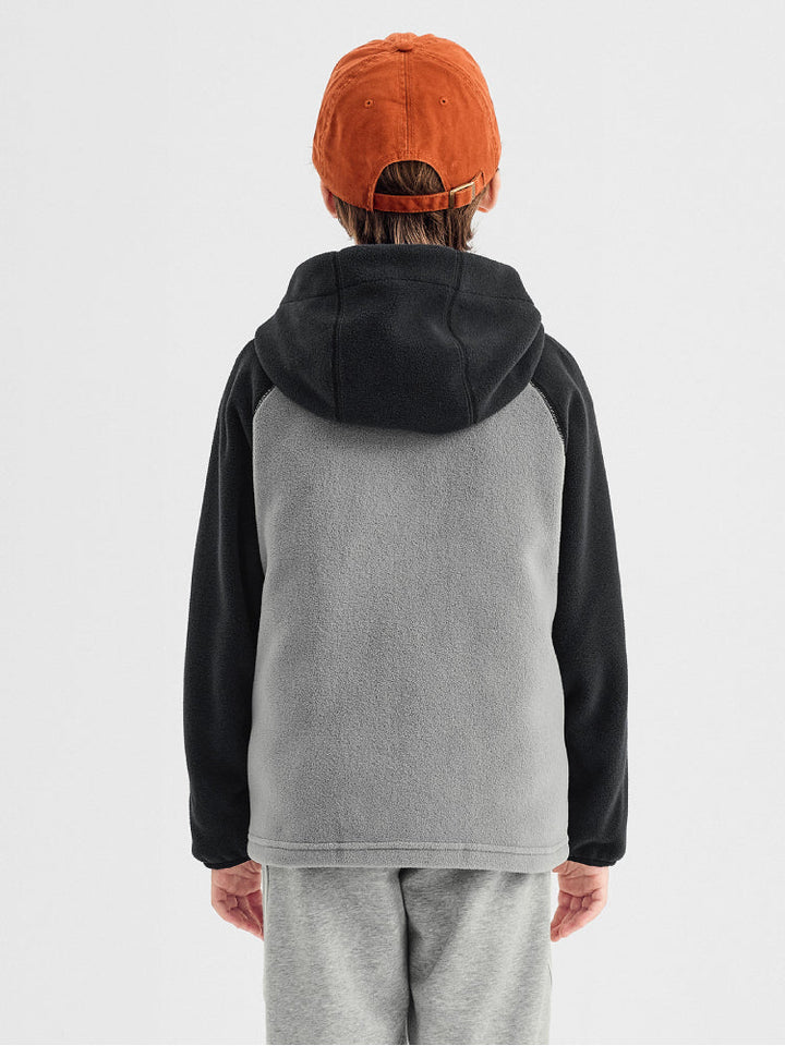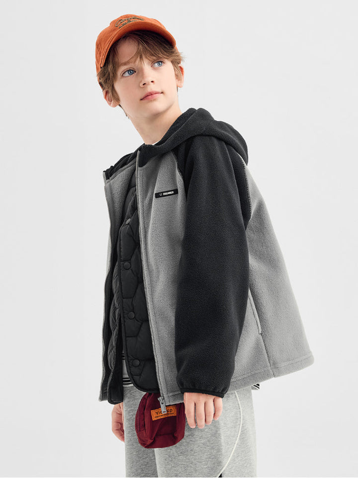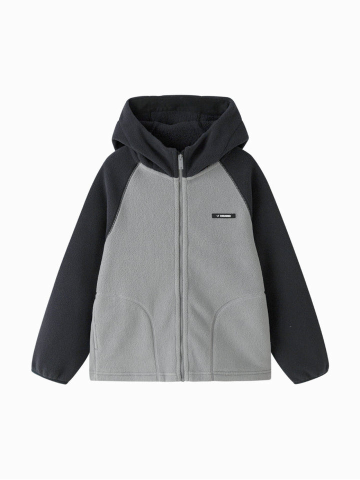 جاكيت بسحاب مع قبعة وأكمام متباينة للجنسين