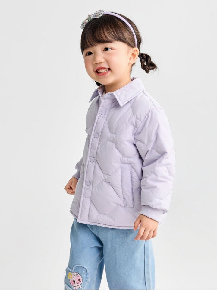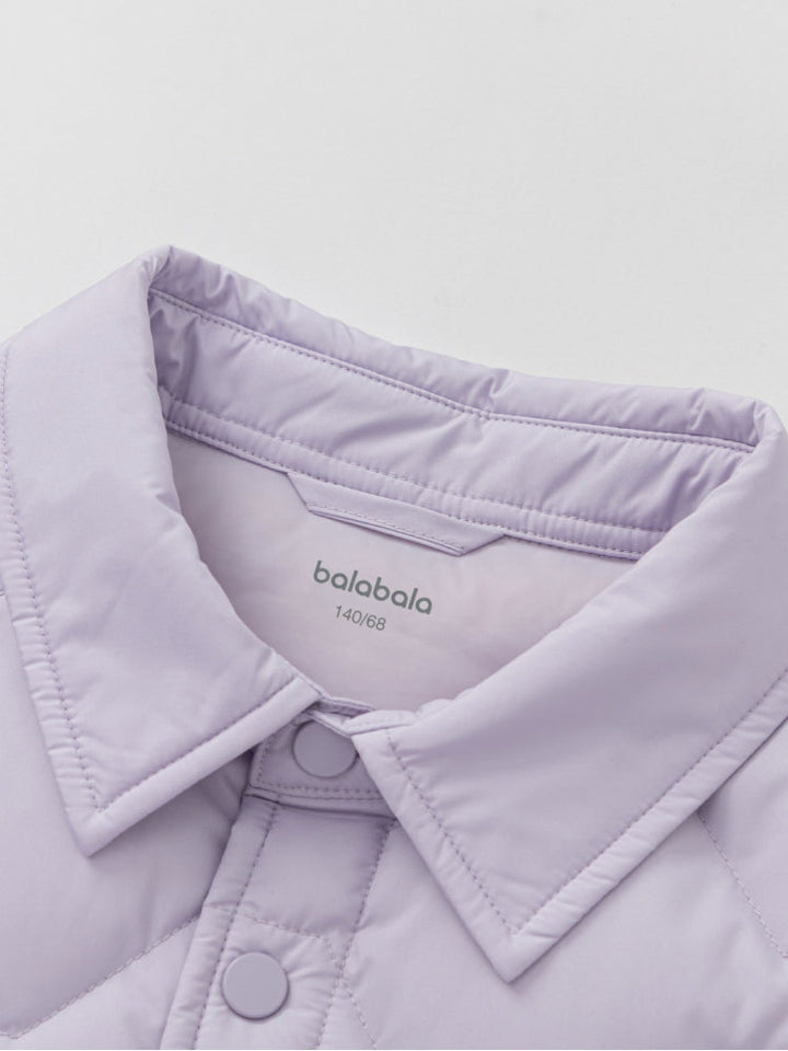 جاكيت منفوش للأطفال بتصميم مبطن يوفر الدفء والراحة. مزود بإغلاق أمامي بالأزرار وياقة كلاسيكية مع جيوب جانبية، ليكون خياراً مثالياً للارتداء في الأيام الباردة.