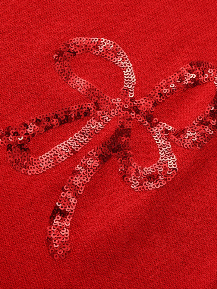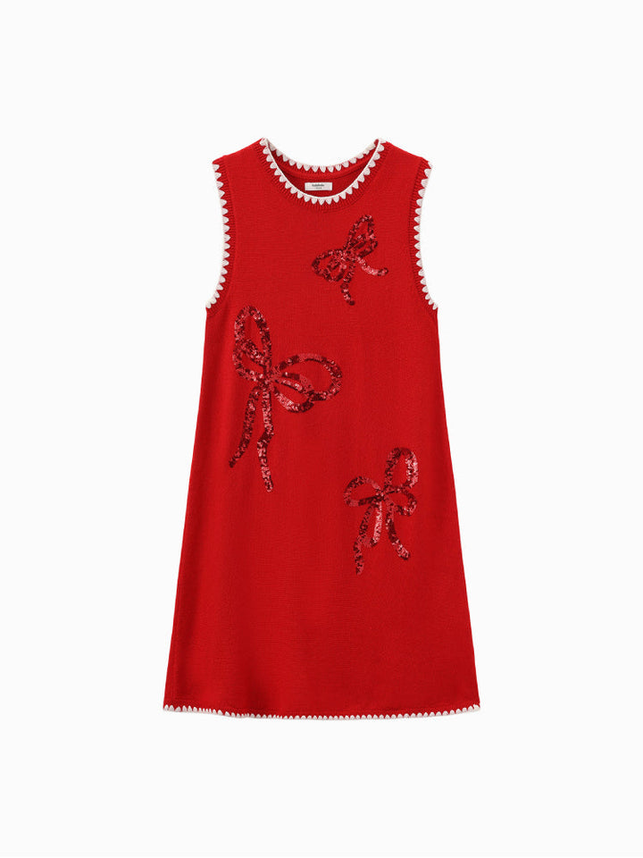 فستان بدون أكمام مزين بفيونكات لامعة للبنات