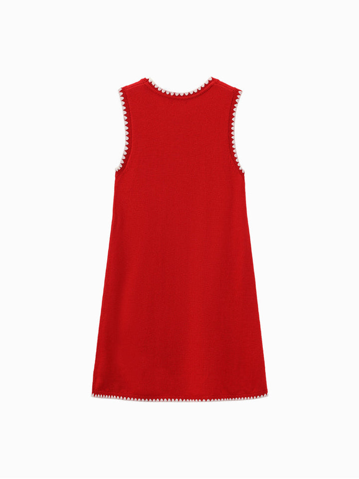 فستان أنيق بدون أكمام مزين بفيونكات لامعة على الأمام، مع حواف مزخرفة عند الرقبة وحول الأكتاف. يمنح إطلالة مرحة وأنيقة في الوقت نفسه، مثالي للمناسبات والإطلالات العصرية للصغيرات.