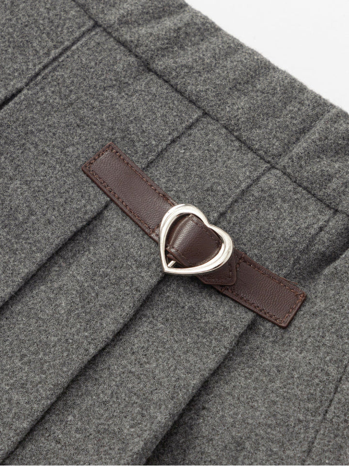تنورة أنيقة مطوية بلون سادة، مزينة بتفصيلة إبزيم على شكل قلب عند الخصر. سهلة التنسيق مع البلوزات أو الكارديجان أو الكنزة لإطلالة عصرية أنيقة.