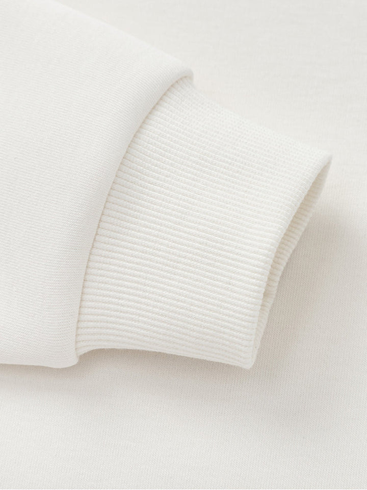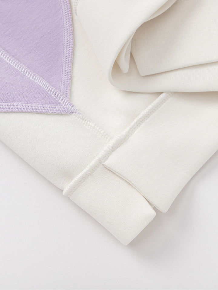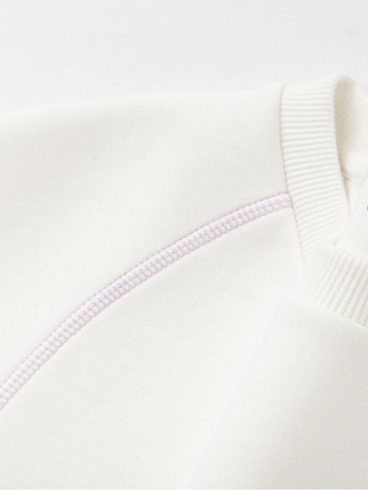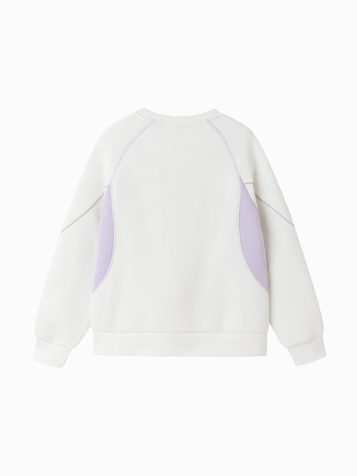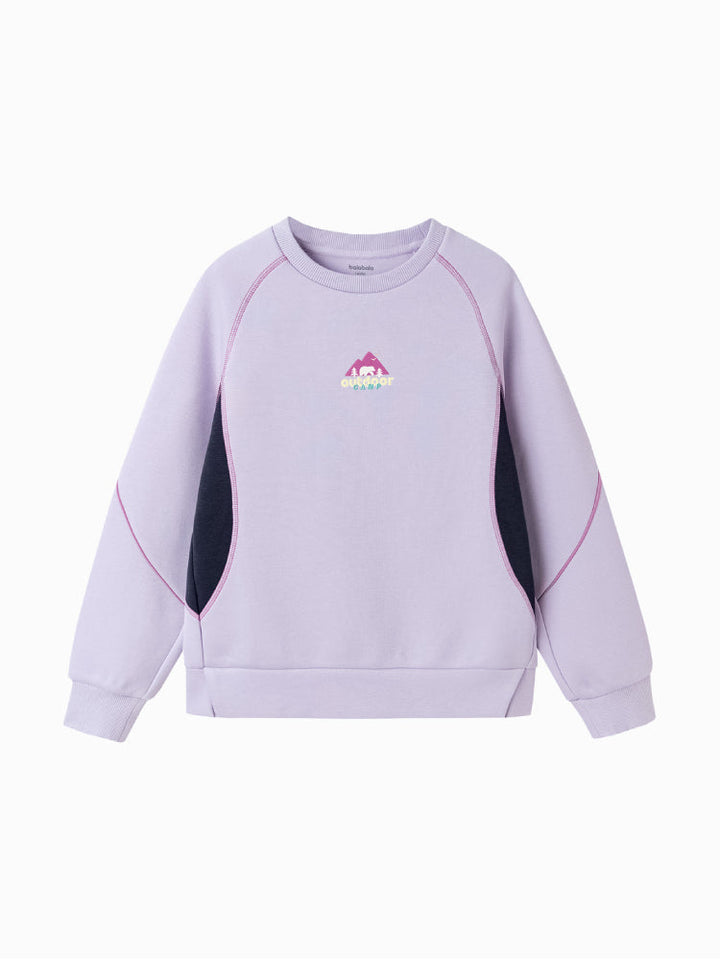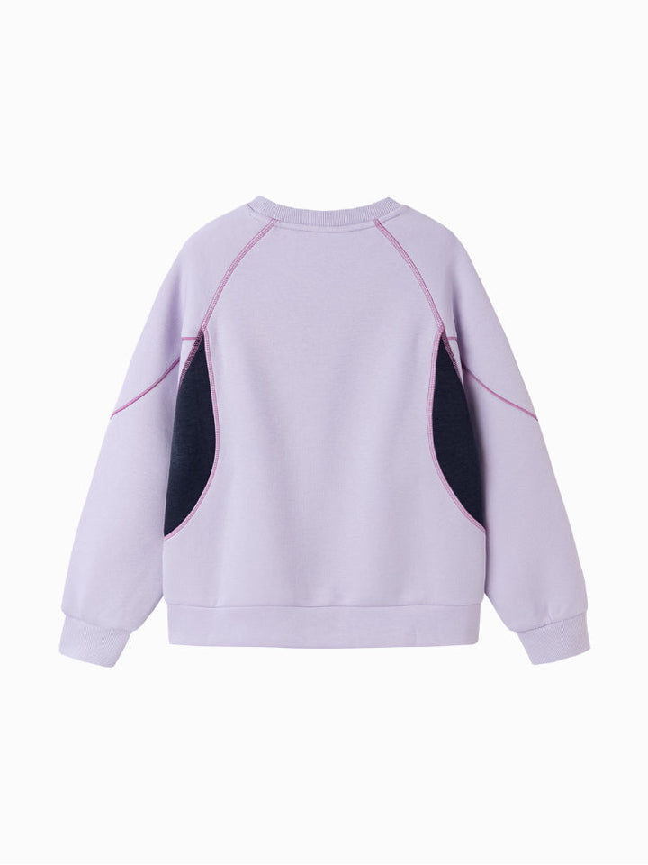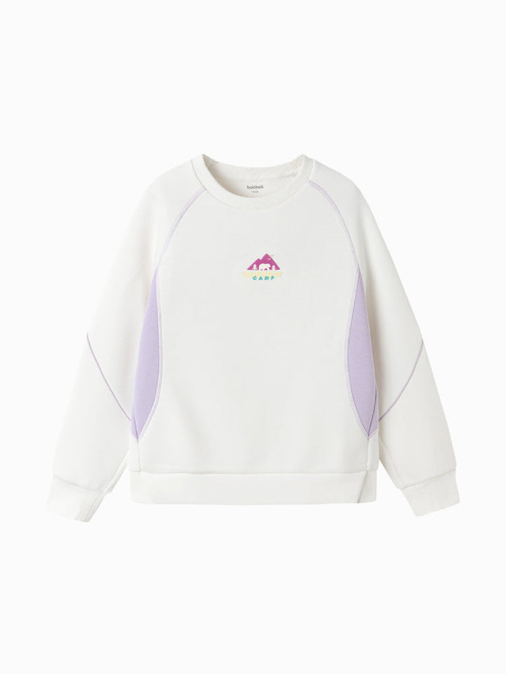 سويت شيرت رياضي للأطفال بتصميم بلوحات جانبية متباينة وخياطة زخرفية لإطلالة عصرية. مزود بجرافيك أمامي صغير وياقة دائرية مع أطراف محكمة، ليجمع بين الراحة والأسلوب العملي لإطلالة يومية أنيقة.
