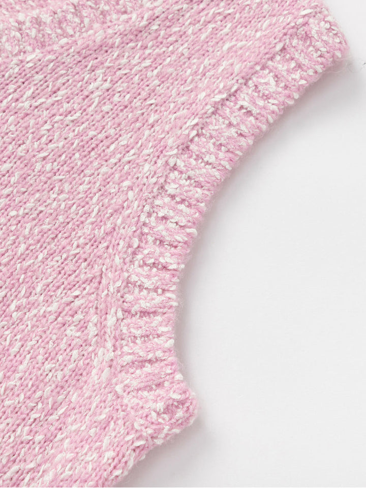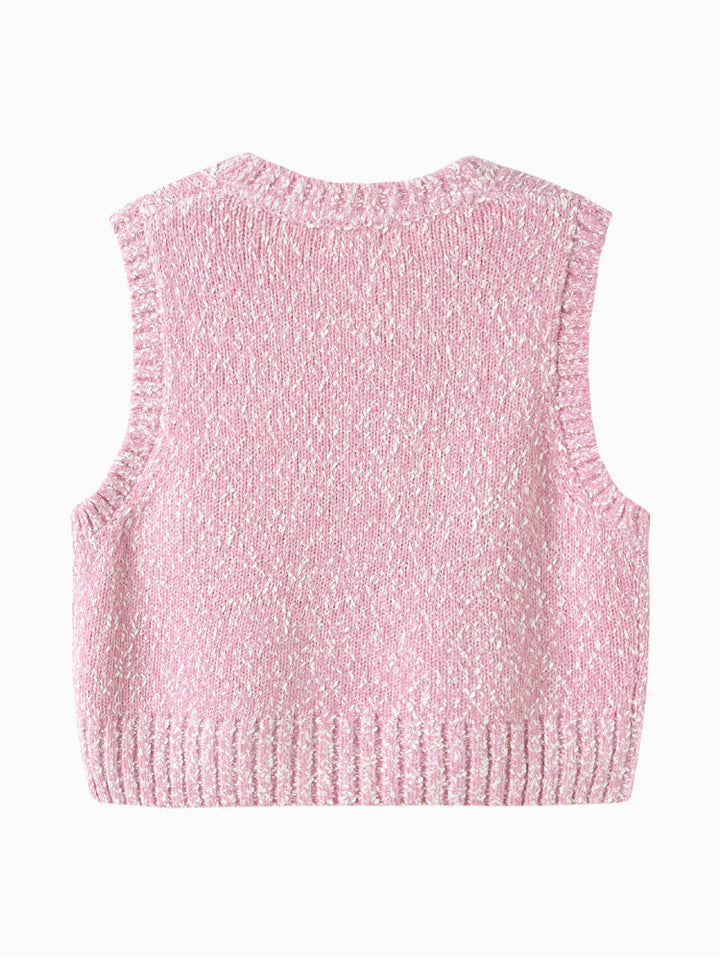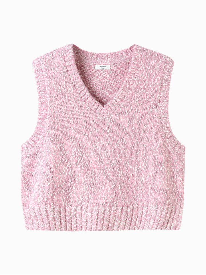 سترة صوفية بدون أكمام بتصميم رقبة على شكل V ونسيج ناعم مريح. مثالية للارتداء فوق القمصان أو الفساتين لإطلالة عصرية مناسبة للموسم.