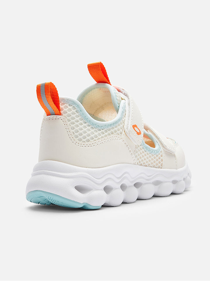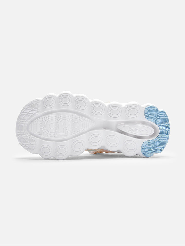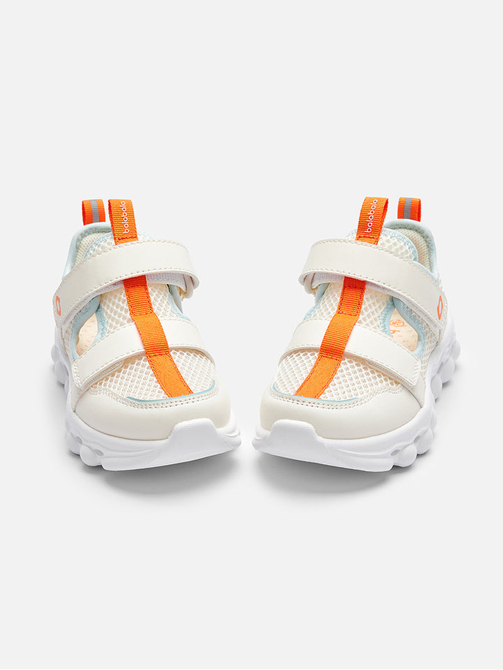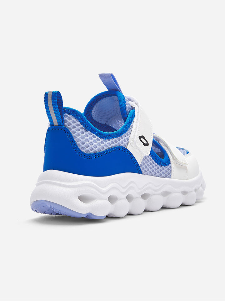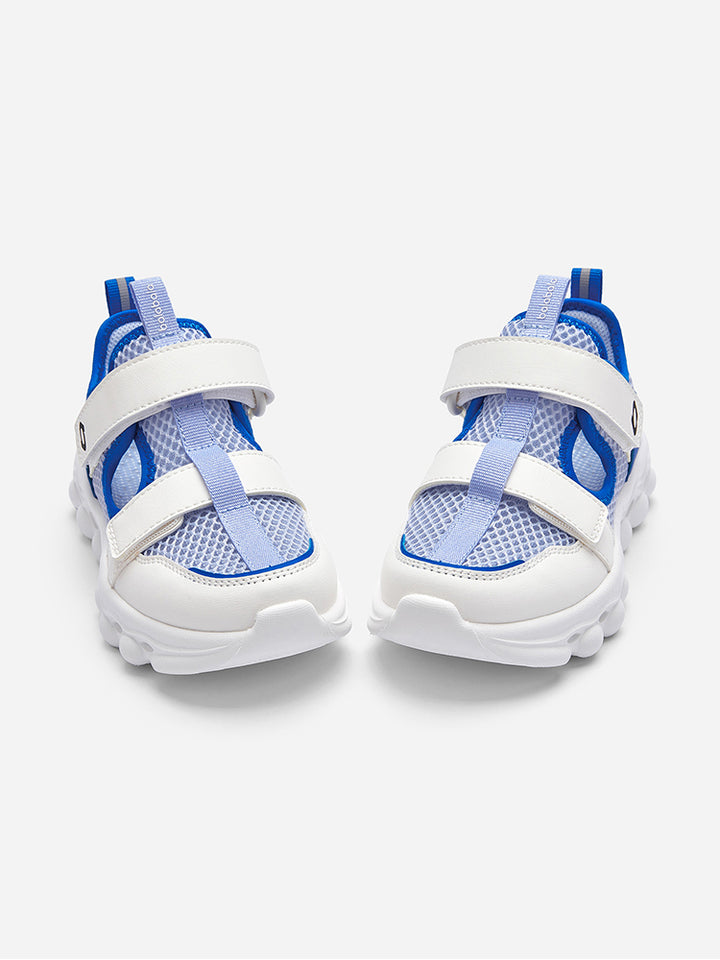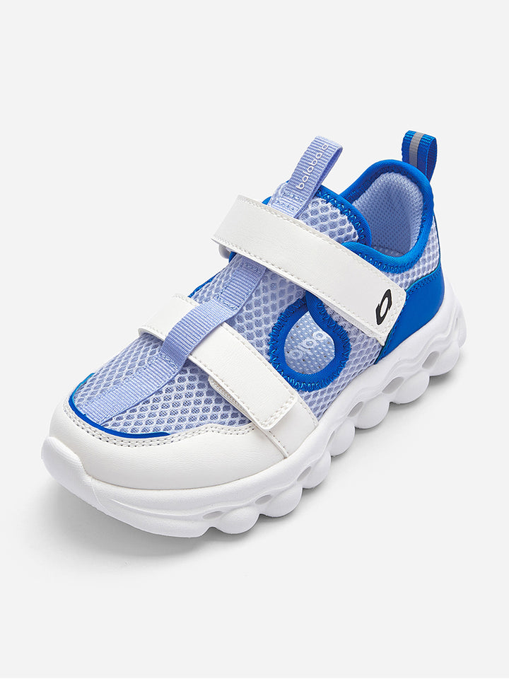 حذاء سنيكرز رياضي مزين بتفاصيل متباينة اللون والخامات، يأتي بشرائط لصق للإغلاق من الجهة العلوية، وبنعل مرن ومريح