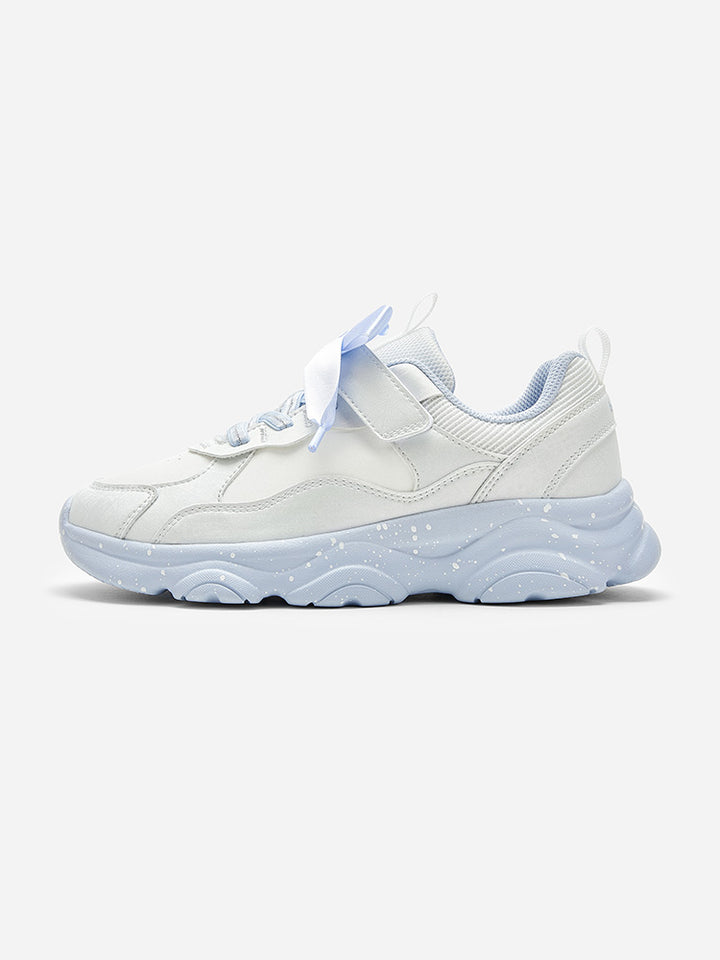 حذاء رياضي كاجوال بنمط متباين اللون، مزين بتفاصيل منقطة على النعل ورباط ساتان من الجهة العلوية، يأتي بأربطة للإغلاق من الجهة العلوية وبنعل مرن ومريح