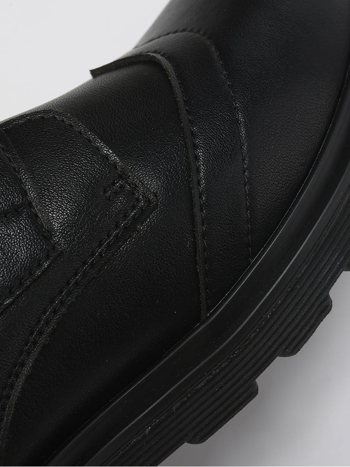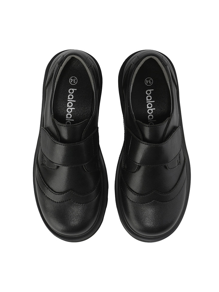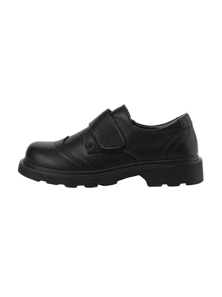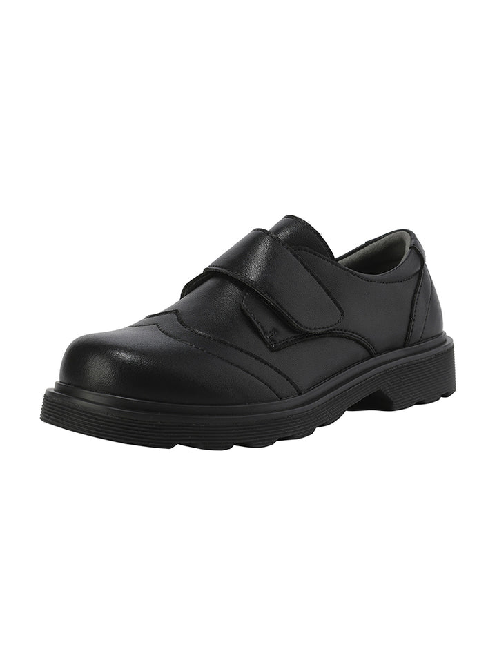 حذاء بستايل أكسفورد كلاسيكي بخامة جلد صناعي ذات لون موحد، يأتي بشريط لصق للإغلاق من الجهة العلوية