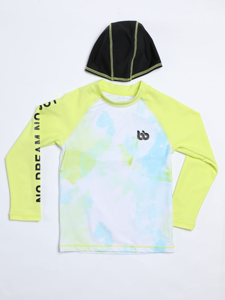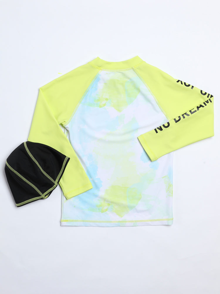 تيشيرت سباحة بأكمام طويلة مع قبعة للأولاد