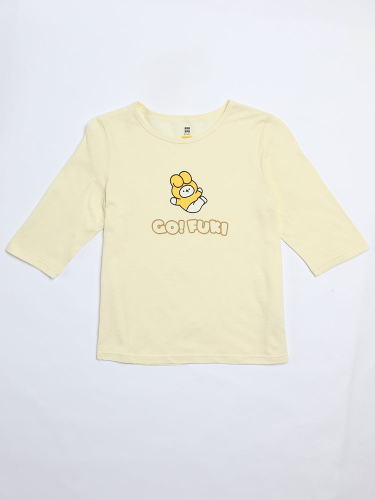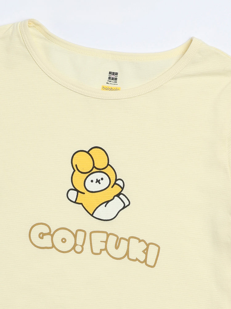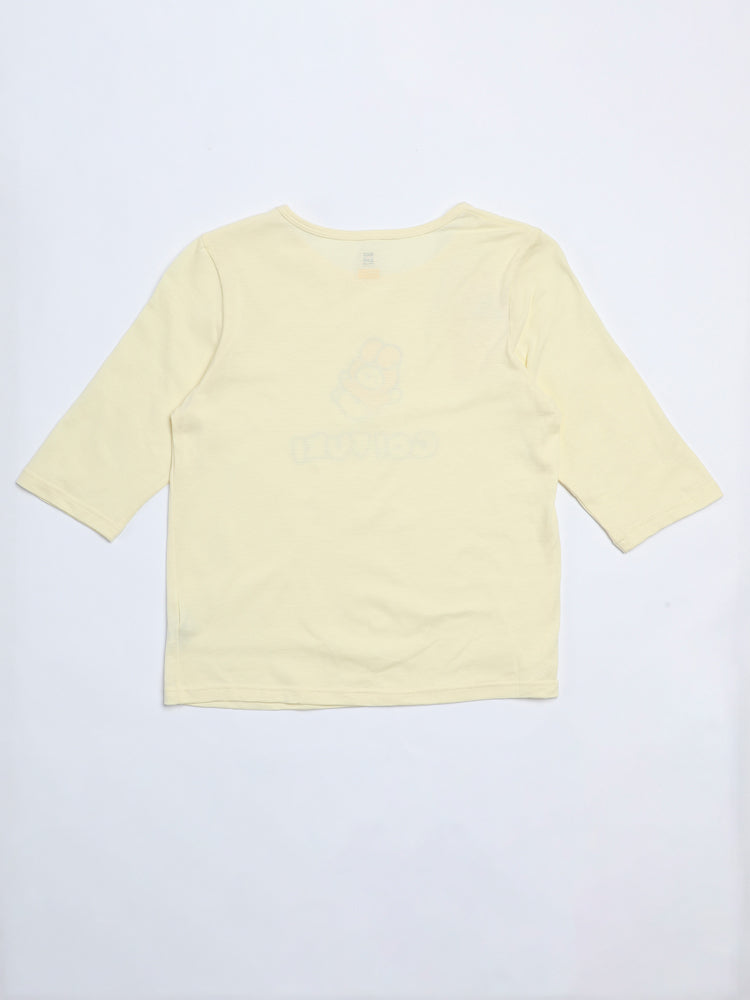 تيشيرت أطفال بأكمام طويلة، مزين بطبعة مرحة في الأمام. مصنوع من قماش ناعم لراحة يومية، مثالي للارتداء في المنزل أو الخروج الكاجوال.