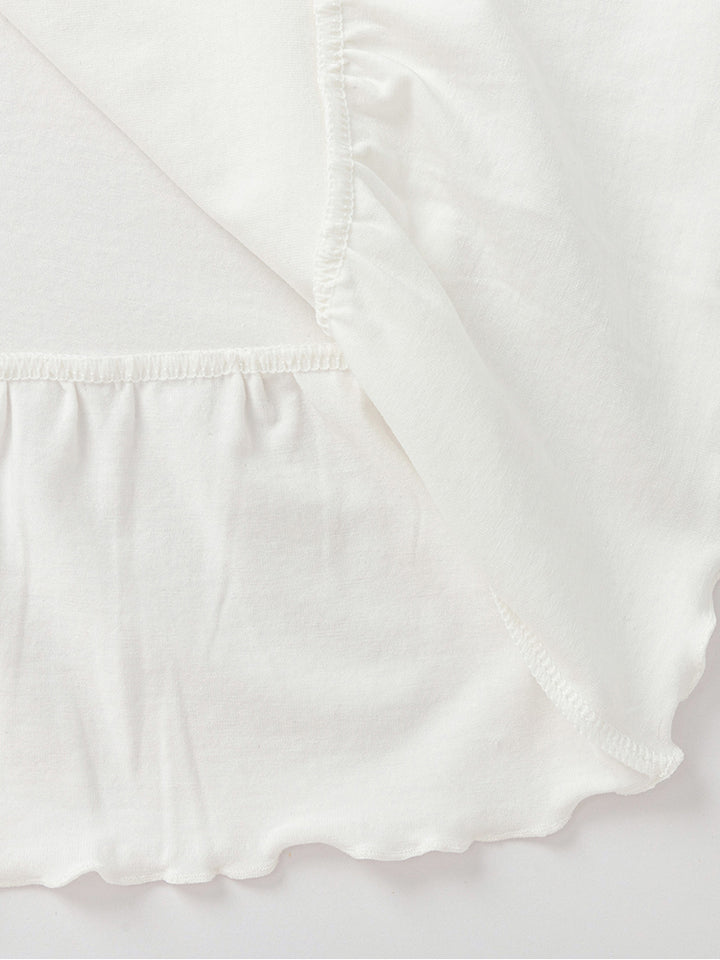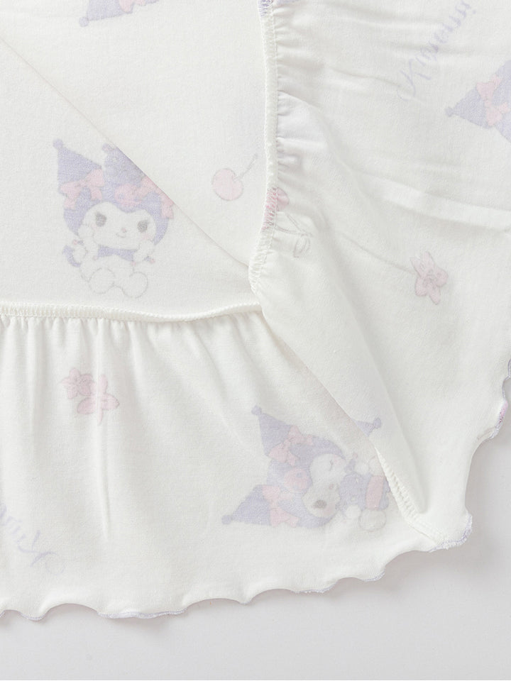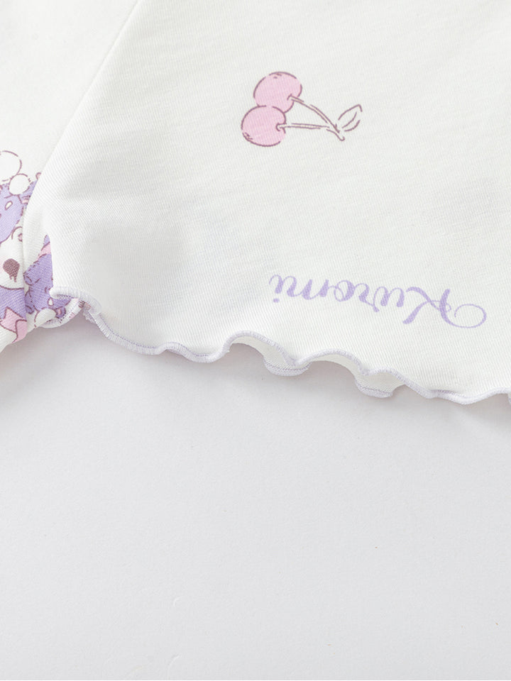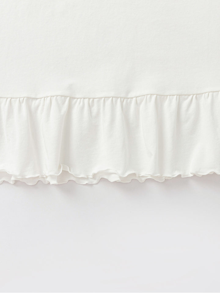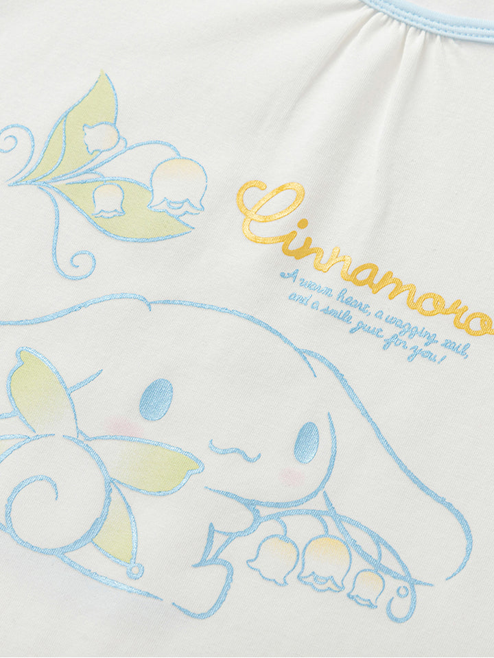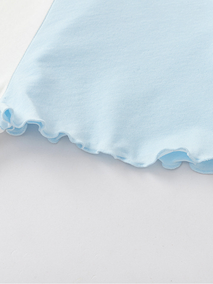 فستان للبيت بأكمام قصيرة، مزين بأكمام متباينة اللون وطبعة من الجهة الأمامية، ياتي بياقة مدورة الشكل