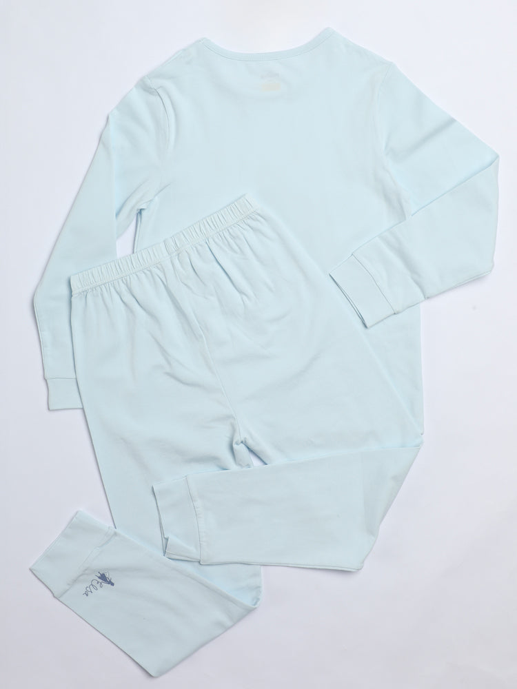 طقم بيجاما بناتي مريح وناعم، يتكون من تيشيرت بأكمام طويلة مع طبعة شخصية وسروال طويل بخصر مطاطي. مصمم ليمنح الراحة والدفء، مثالي لأوقات النوم.