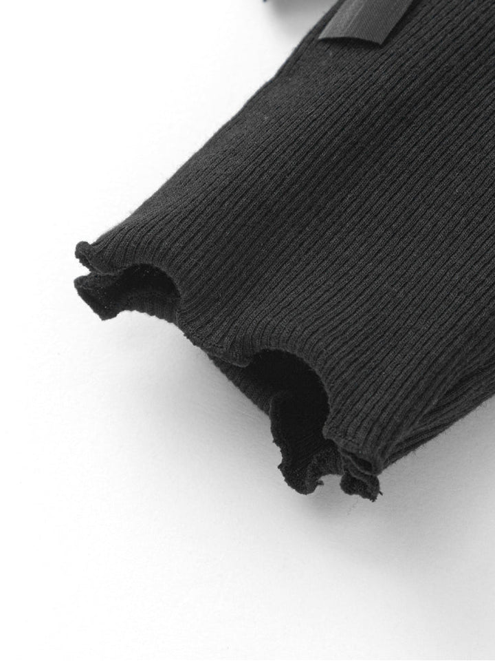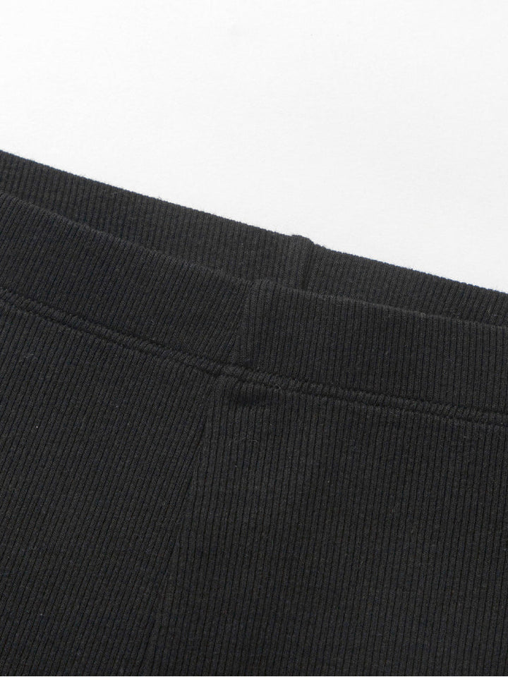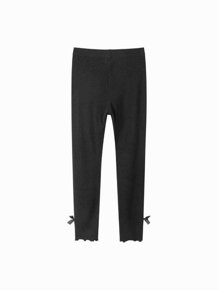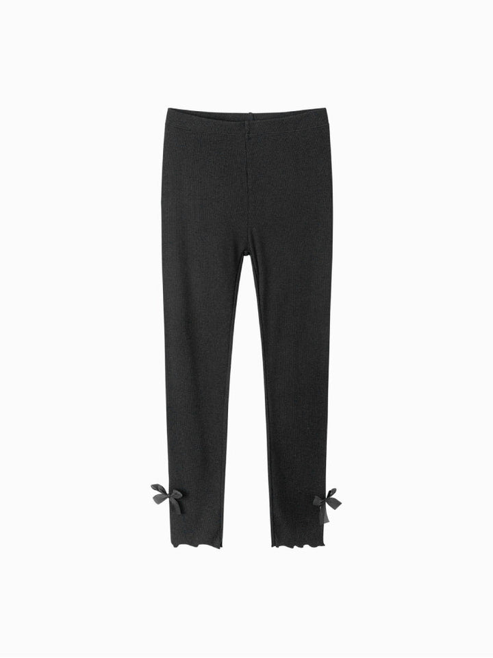 بنطلون ليقنز مرن بتصميم مضلع مزين بفيونكات جانبية على الحافة، يجمع بين الراحة اليومية ولمسة الأناقة الناعمة.