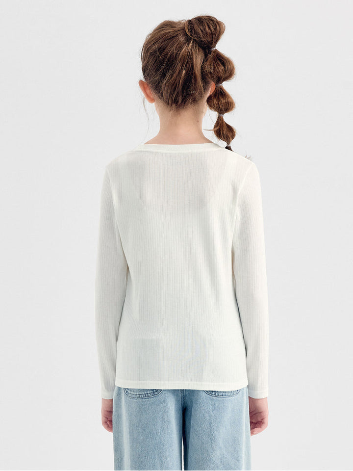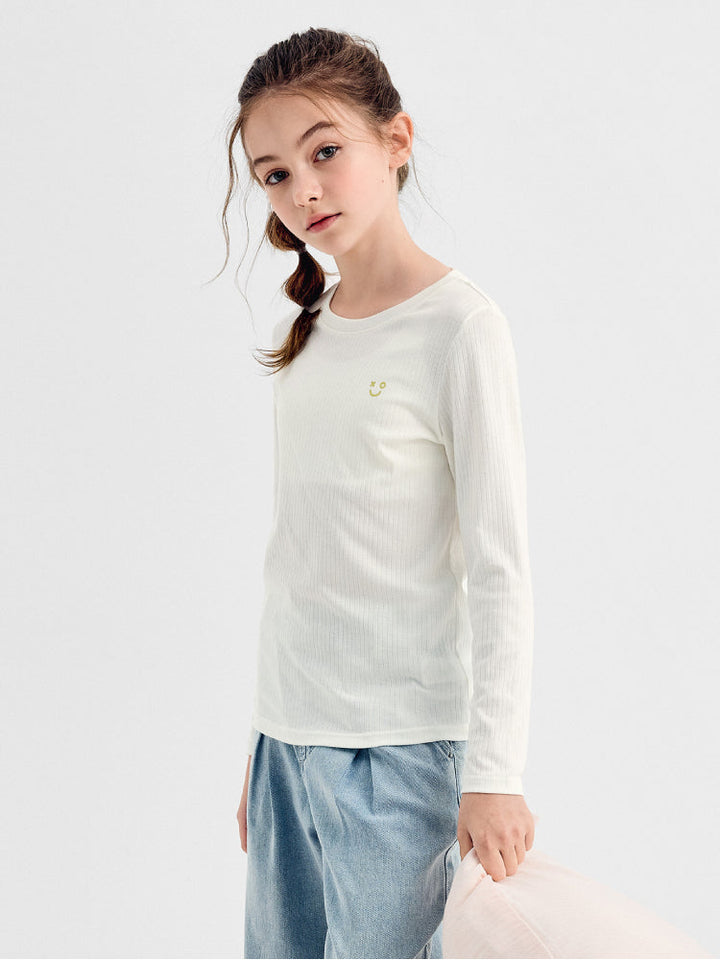بلوزة مضلعة بأكمام طويلة مزينة بتفصيل جرافيك بسيط عند الصدر، مصنوعة من قماش ناعم ومرن لراحة تدوم طوال اليوم، بتصميم عصري وأنيق يسهل تنسيقه مع مختلف الإطلالات اليومية.
