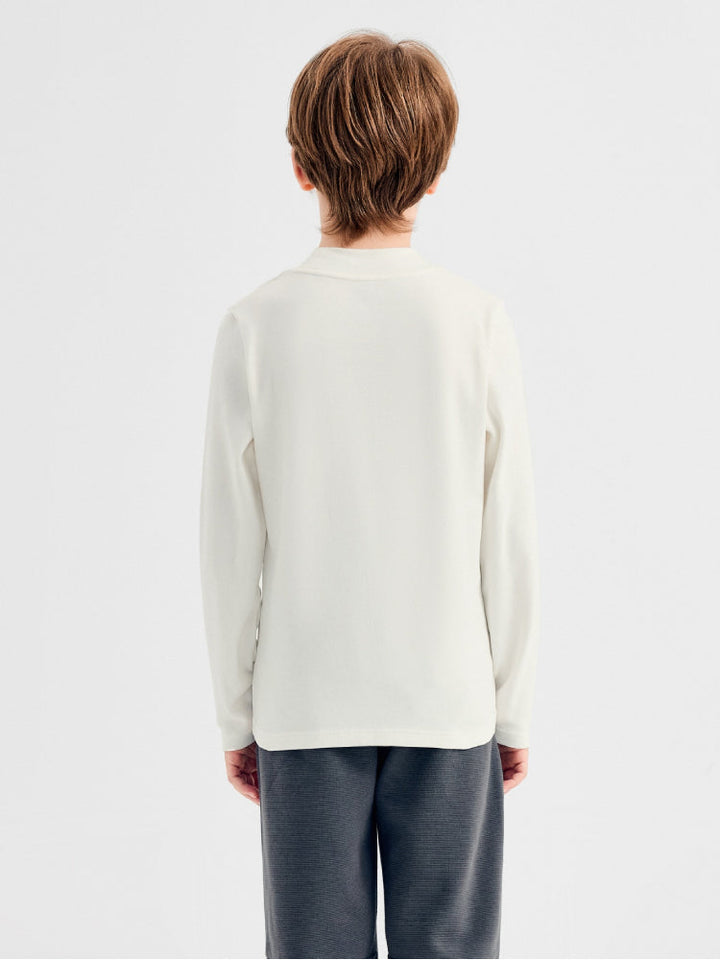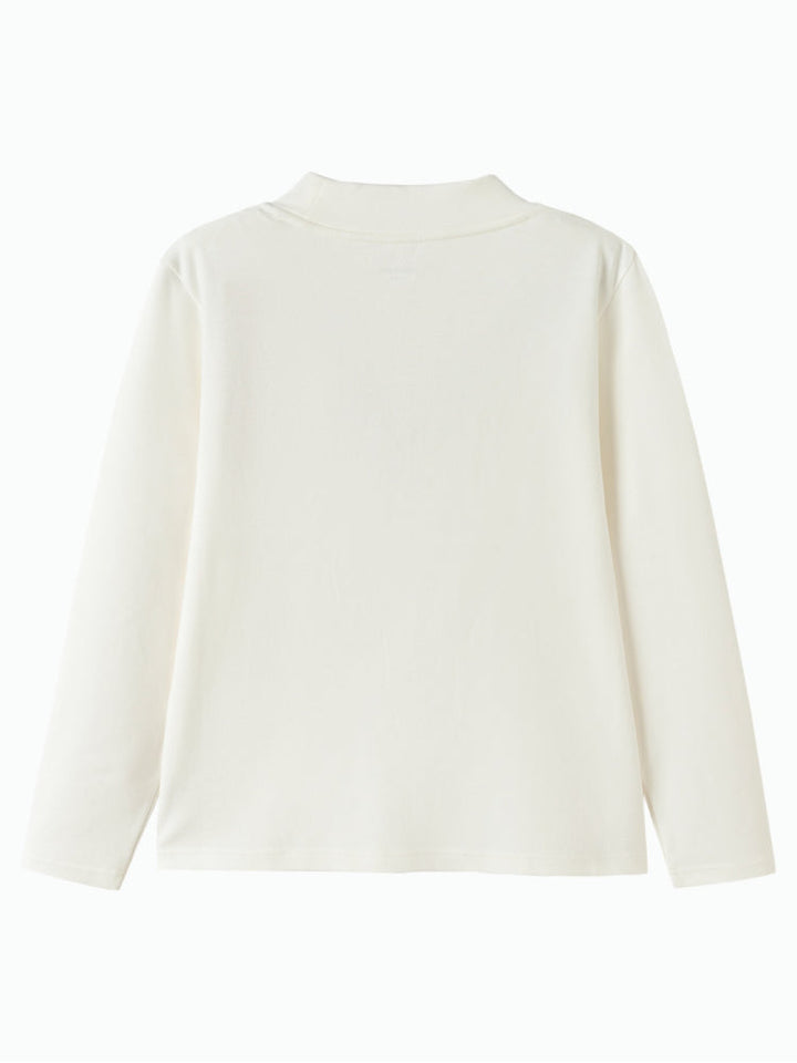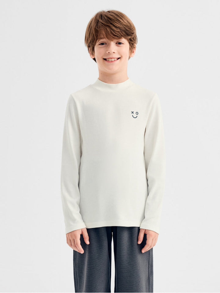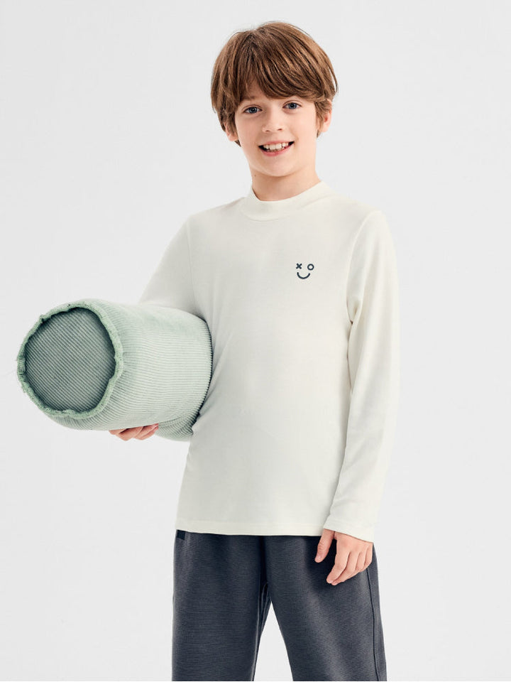 تيشيرت أطفال بأكمام طويلة، مزين بتطريز صغير في الأمام يضيف لمسة مرحة. مصنوع من قماش ناعم وخفيف، مناسب للارتداء اليومي وللتنسيق مع طبقات أخرى.