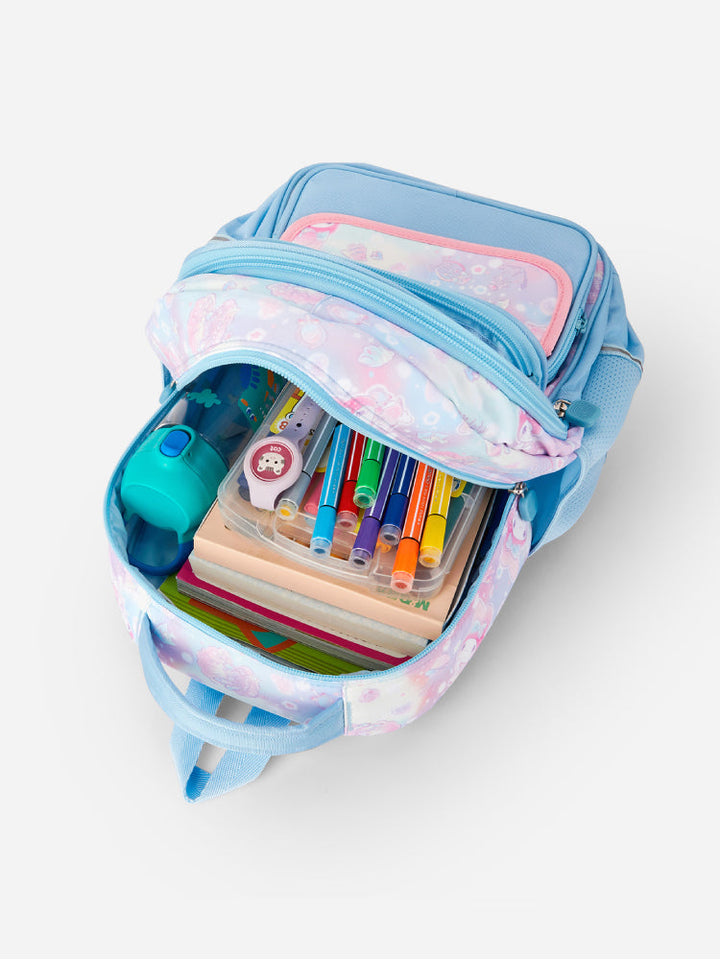 حقيبة مدرسية واسعة وعملية بتصميم ماي ميلودي مرح، تحتوي على عدة جيوب بسحّابات لتنظيم الأغراض، وجيوب جانبية شبكية لحمل القوارير، وظهر وأحزمة كتف مبطنة قابلة للتعديل لراحة تدوم طوال اليوم. مثالية لحمل الكتب والأدوات المدرسية والأغراض اليومية بأناقة.