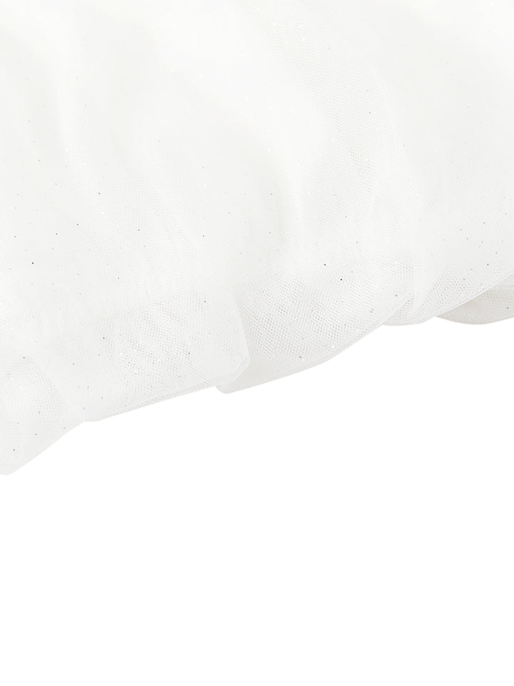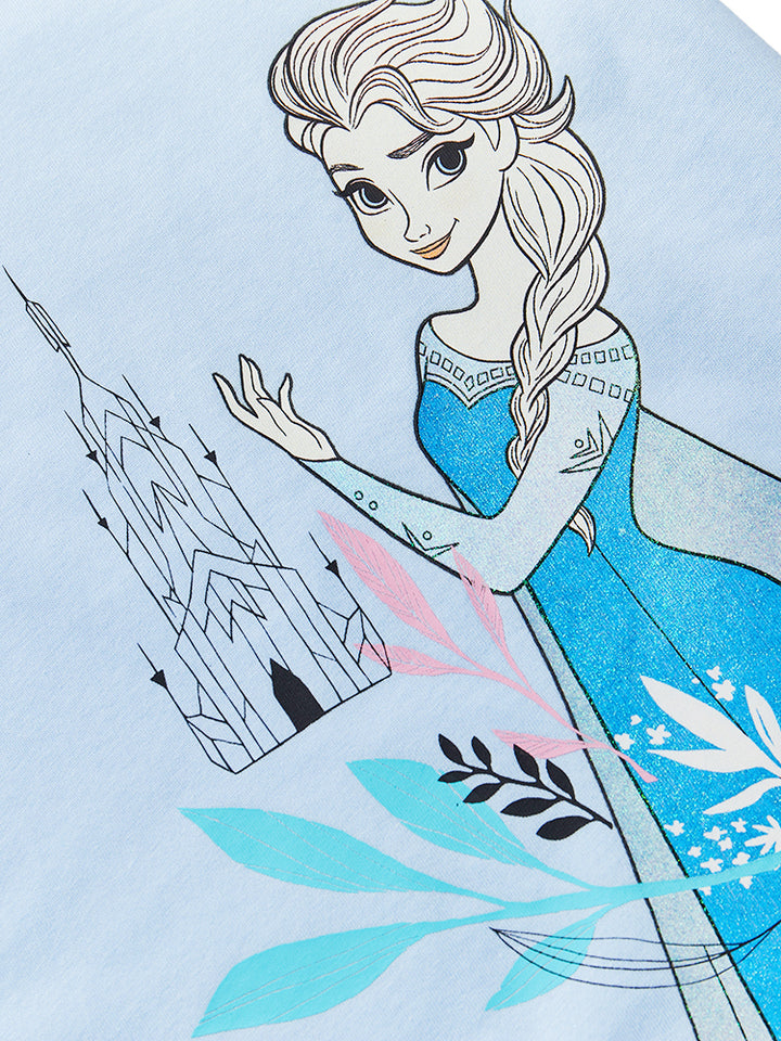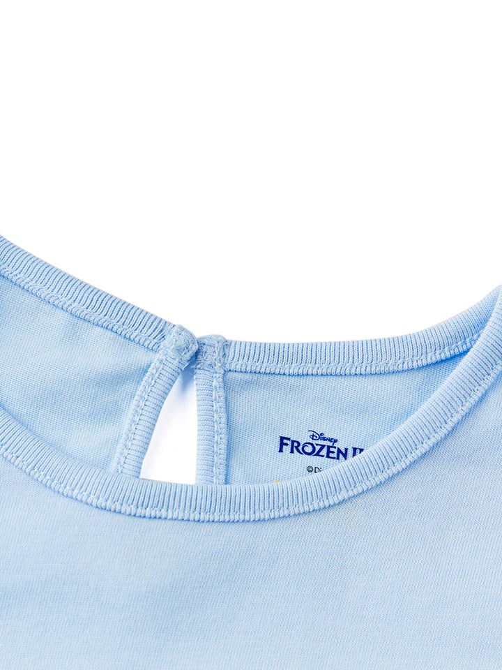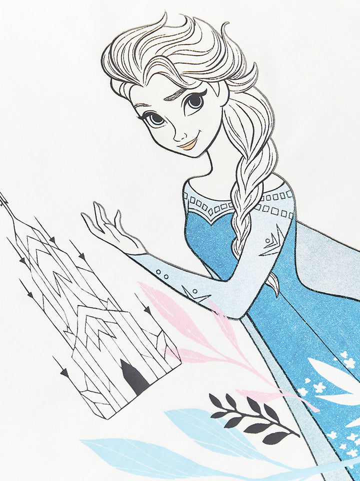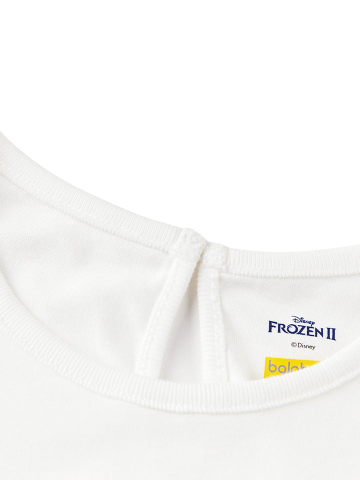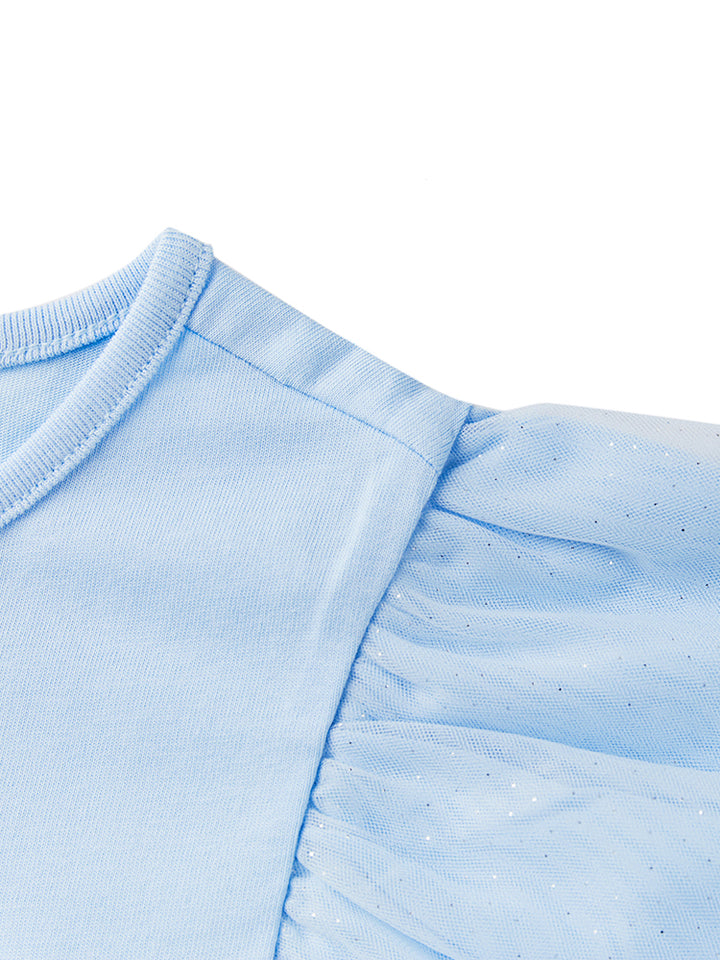 تيشيرت بأكمام قصيرة، مزينة بطبعة من الجهة الأمامية وبتفاصيل خامة تل طبقات على الأكمام، تأتي بزر للإغلاق من الجهة الخلفية وبقبة مدورة الشكل