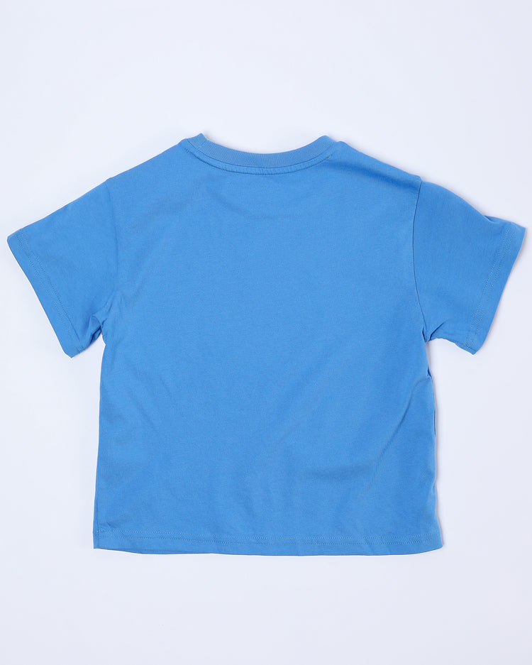 تيشيرت أطفال مصنوع من قطن ناعم مزين بطبعة ديناصور مرحة في الأمام. يتميز براحة في الارتداء وأكمام قصيرة، مناسب للإطلالة اليومية السهلة.
